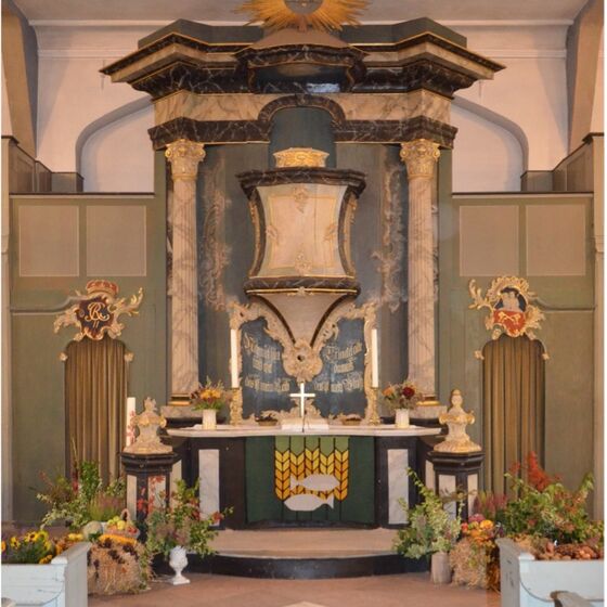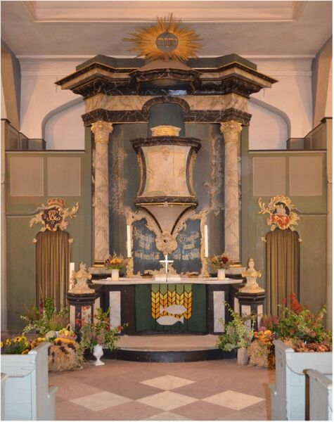 Sie ist denkmalgeschützt und weist neben dem Kanzelaltar im Stil des Rokoko die Besonderheit auf, dass an den Kopfbändern des Tonnengewölbes Cherubimköpfe der Bildhauerhin Clara Westhoff und an den Deckenpfeilern Blumenornamente der weltberühmten Malerin Paula Modersohn-Becker aus dem Jahre 1900 zu sehen sind.